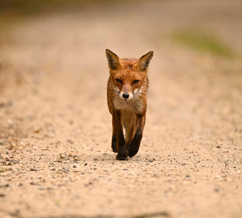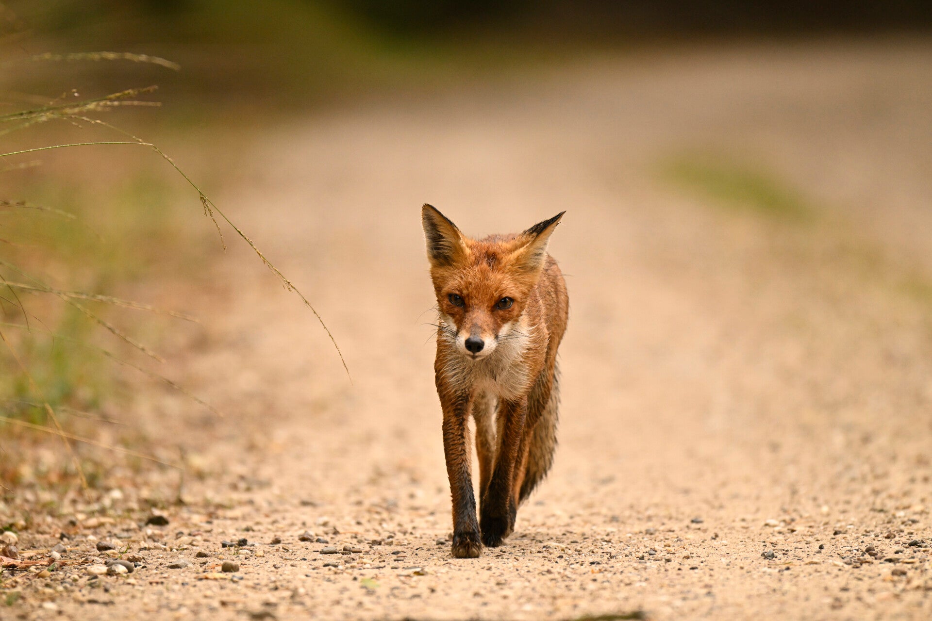 Afgelopen zomer was ik in de Kroondomeinen, en onderweg zag ik op één van de vele bospaden een vos lopen in de verte. Deze vos was op jacht, en heb hem een tijdje lang op afstand goed kunnen observeren. Vossen jagen voornamelijk op muizen, en doen dat voor een groot deel op het gehoor. De vos die ik zag legde enorme afstanden af en verplaatste zich opvallend snel. Tussentijds hield hij in, staarde naar de berm en bleef zo een tijdje staan luisteren en kijken, en valt dan in een sprong aan. Na een tijdje had hij zijn bek vol en liep verder een aantal bospaden af. Ik besloot hem via een omweg op te wachten waarbij de garantie dat hij hetzelfde pad zou nemen, niet gegarandeerd was. Ik besloot plat op de buik te gaan liggen, camera in de aanslag en daarna begint het wachten.....Zou ik hem daar treffen?