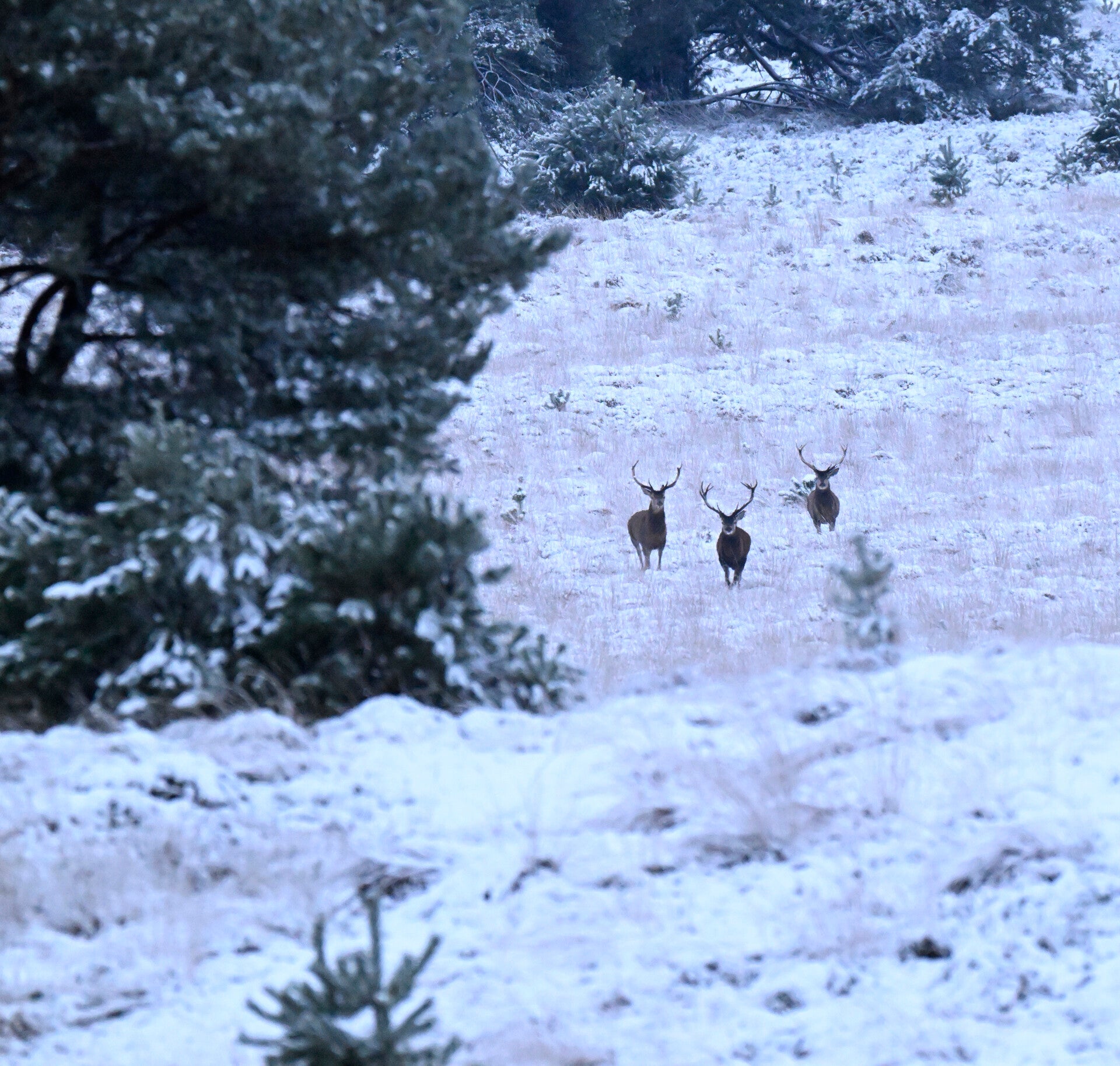 Bij het bezoeken van de Veluwe in de winter, is het alsof de natuur een winterslaap houdt, maar niets is minder waar. Afgelopen weken hebben we te maken gehad met echte winterse omstandigheden met veel sneeuwval en lage temperaturen. De stilte en de verstilde landschappen bieden een unieke kans om de schoonheid van de Veluwe op een andere manier te ervaren. De kale bomen, besneeuwde heidevelden en bevroren vennen creëren een sprookjesachtige sfeer. Ik heb de afgelopen weken de Veluwe bezocht om de winterse taferelen vast te leggen. Het is altijd een uitdaging om de juiste momenten te vinden, wanneer het licht zacht of juist hard is en de natuur zich van haar mooiste kant laat zien. Daarbij is het belangrijk om goed voorbereid te zijn op de kou en de wisselende weersomstandigheden. Warme kleding, goede schoenen en een thermoskan met warme drank zijn onmisbaar. Als je je niet goed voorbereid kun je makkelijk onderkoeld raken tijdens langere tijd stilzitten. Het is altijd de afweging die ik maak, om te gaan lopen en warm te blijven, maar minder kans heb om wild te zien, of stil zitten en kans lopen om snel af te koelen maar een hogere kans heb op het zien van wild. Tijdens mijn tochten kwam ik sporen tegen van dieren die ook actief zijn in de winter, zoals vossen, zwijnen, reeën, de wolf en edelherten. De Veluwe is een prachtig gebied om te wandelen en te genieten van de rust en de ruimte. De winter geeft de Veluwe een extra dimensie, waardoor het besneeuwde landschap een onvergetelijke ervaring wordt. Hieronder een aantal beelden van de winterse taferelen die ik heb mogen beleven en vastleggen.